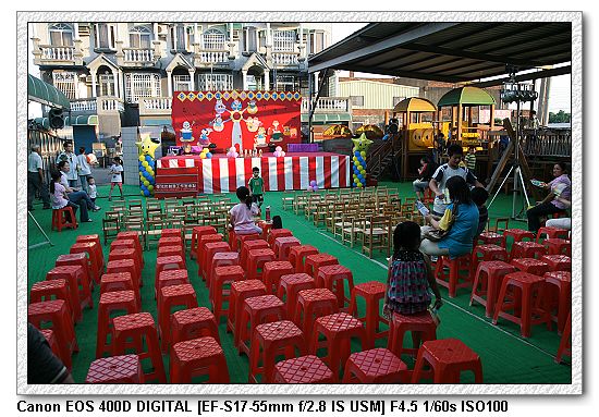 ▼今晚表演場地,幼稚園前院,木椅是給小朋友,塑膠椅是給家長
