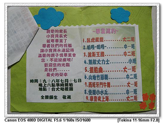 今天是台大幼稚園第11屆畢業典禮,每個班級都被安排兩個表演,這個活動似乎已安排的兩個多月之久,小羽偶而回家會唱學校排演的歌。