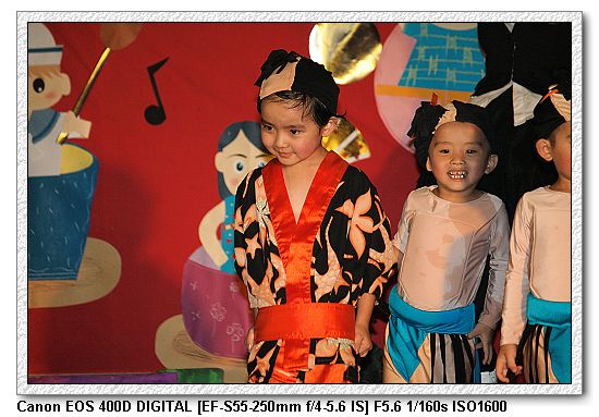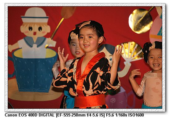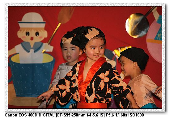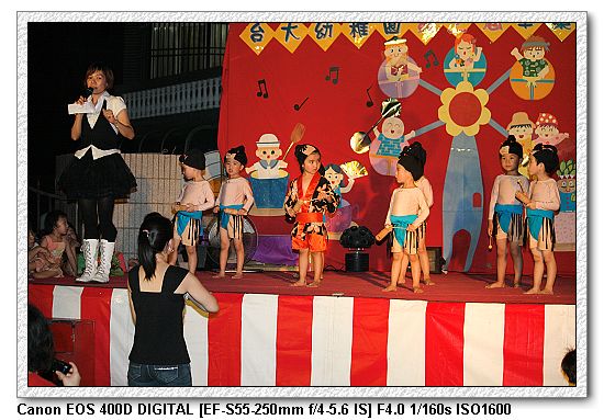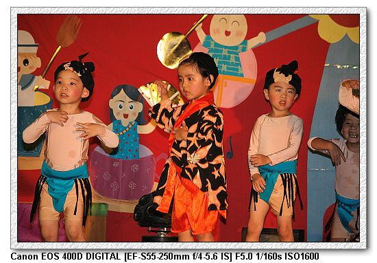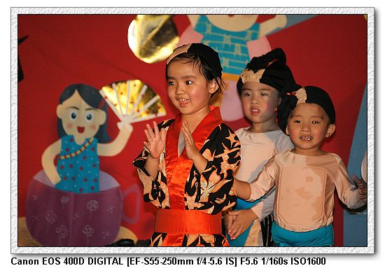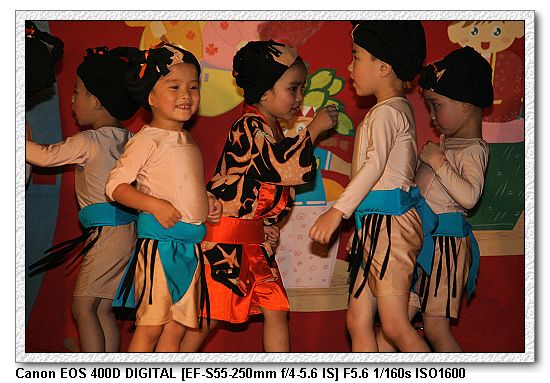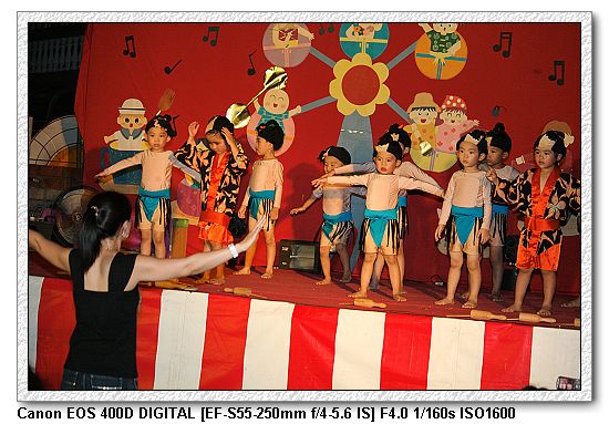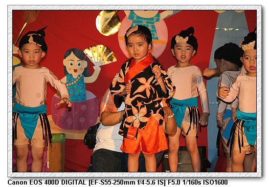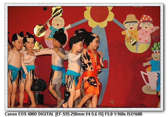 現在的幼稚園都會有美語課,想當然爾一定會有美語表演。大中小班除了念美語之外,還有走位、變換隊形等表演,搞的超複雜, 一付就是要表現出「來這上課沒有白花錢」。不過小朋友都很厲害。大家都沒有忘記動作。