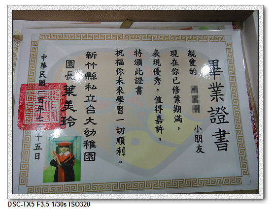 ▼幼稚園的畢業證書