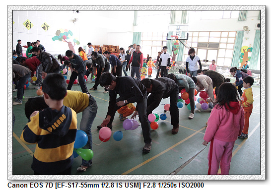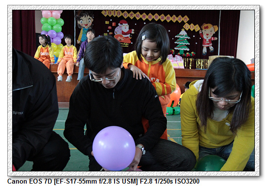 這一項"聖誕響叮噹"的遊戲,主角們則是小朋友的爸媽。小朋友在旁休息。