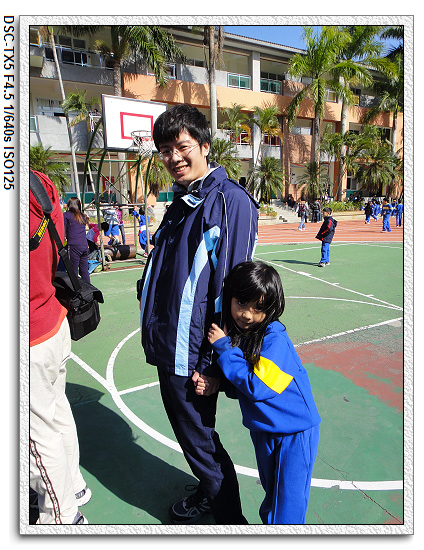 而親子闖關的活動,是在所有年級接力賽完成之後舉行。也是在操場中央。親子闖關是家長參與背小朋友+跳繩+搖呼拉圈的活動。因為是親子活動,所以沒有所謂的比賽,只要完成即可獲得小禮物。