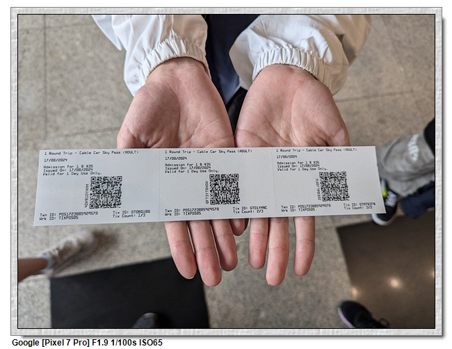 高空滑索後,沒有多待我們就離開西樂索沙灘,要趕去其他地方吃晚餐。一路搭纜車回到港灣站。