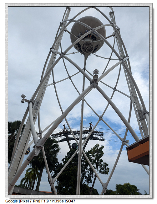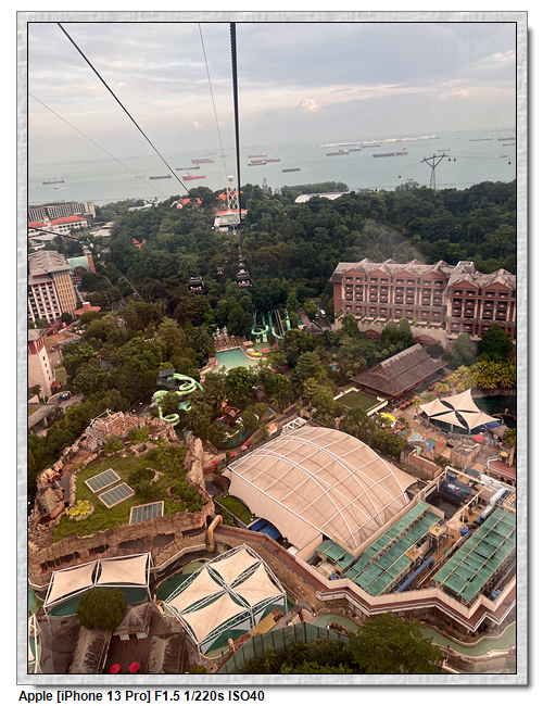 抵達聖淘沙站,一出站就有一個很像大怒神的遊樂設施,SkyHelix Sentosa,其實是新加坡最高露天全景空中旋轉觀景台,外觀像一顆飛碟,下方就是一張圓桌,一次可以容納16位乘客,中間有平台跟工作人員,帶著大家升到半空中,俯瞰整座聖淘沙島。
