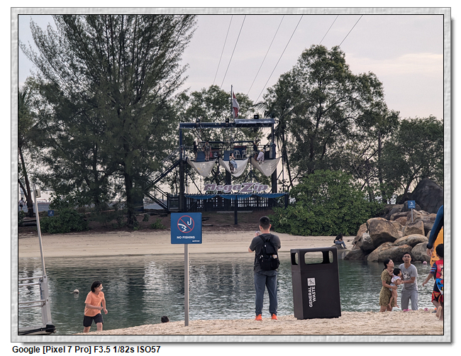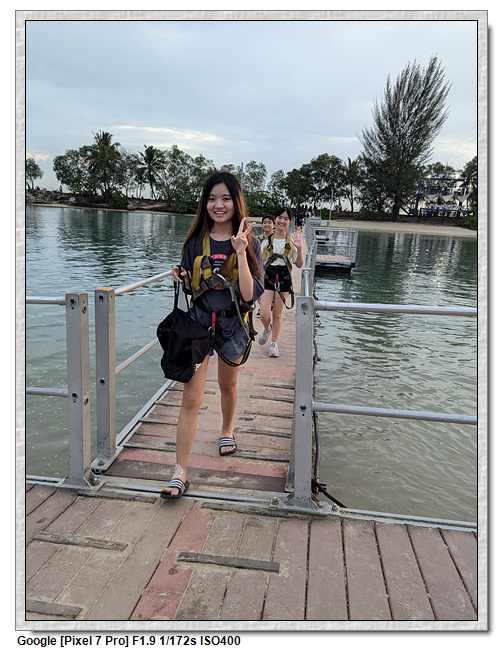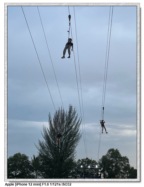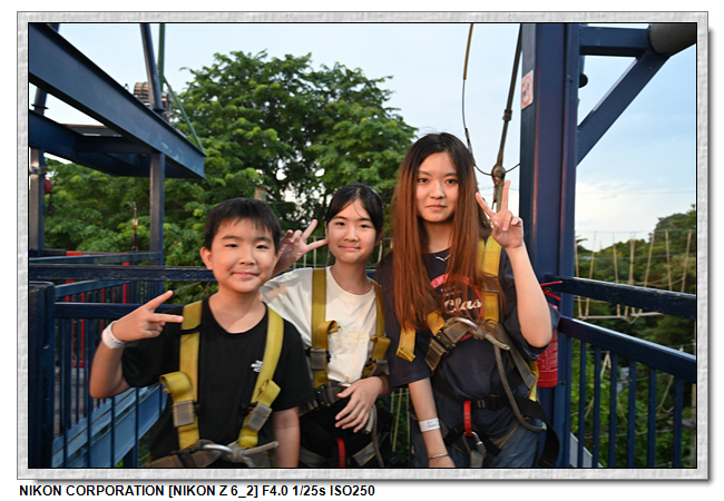 西樂索景區是個沙灘,有很多沙灘的活動,高空滑索,蹦極跳,音樂酒吧和海濱餐廳等活動的海灘。沒玩到Skyline Luge,看到有人在玩高空滑索,小羽也想玩,那兩隻小朋友也要跟著玩,最後就是小孩去玩高空滑索,大人在拍照。