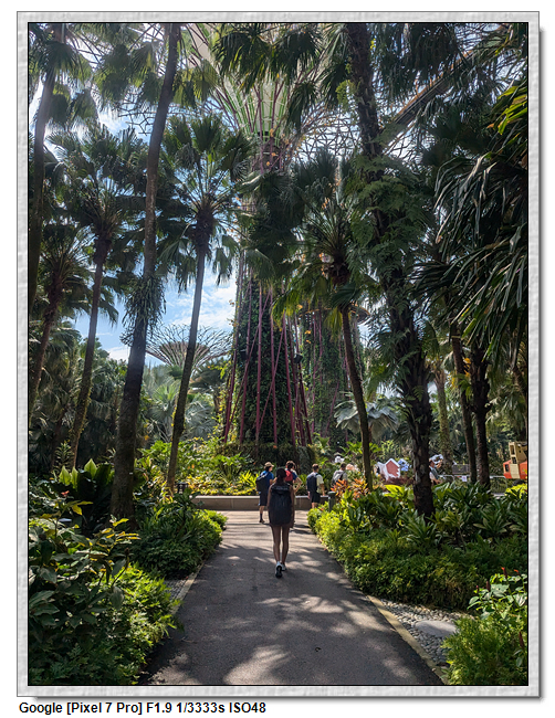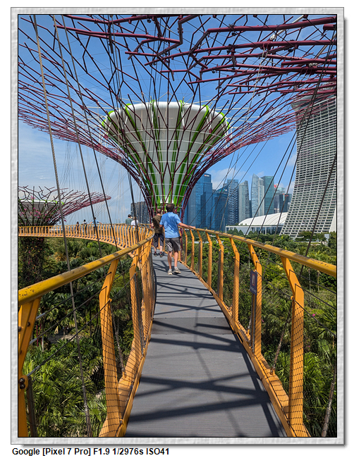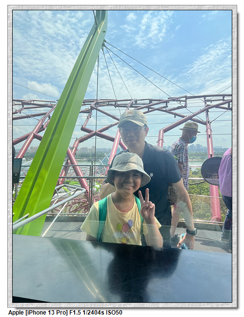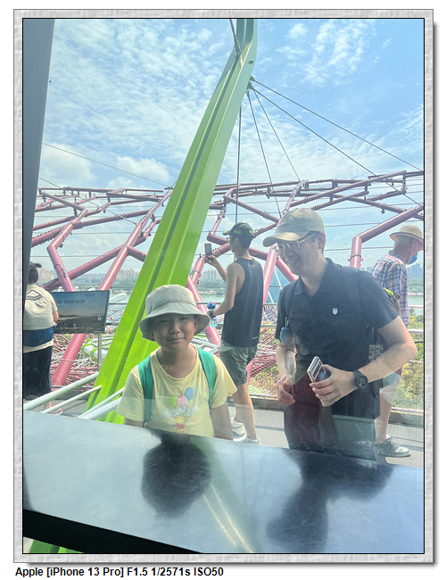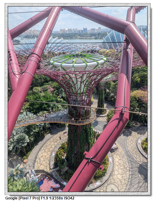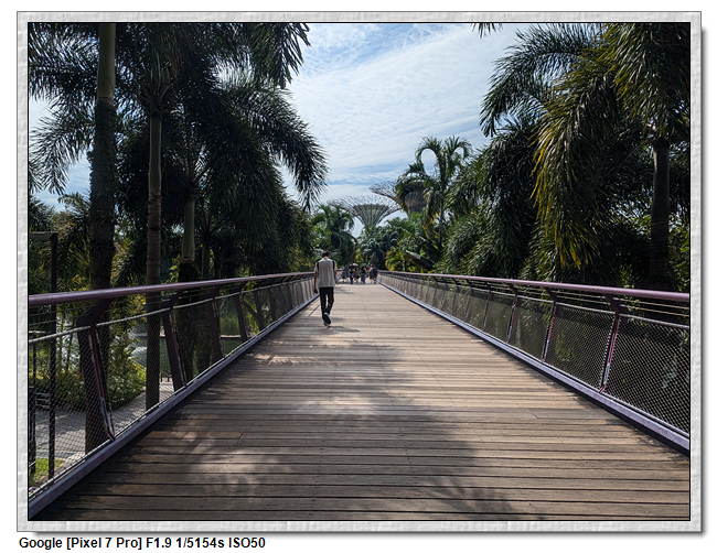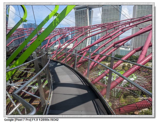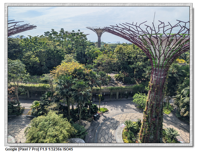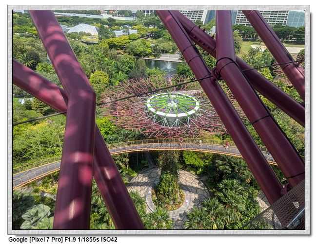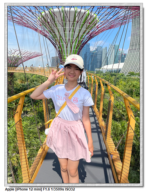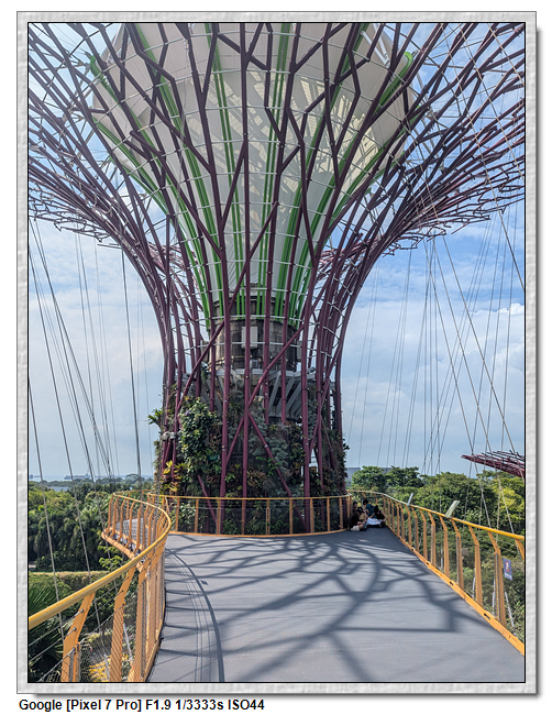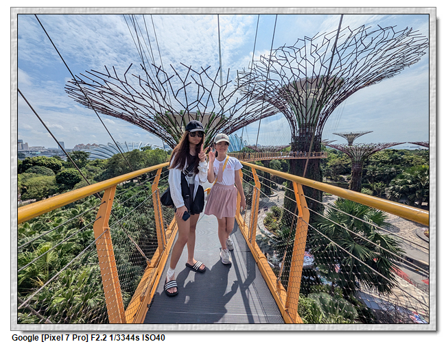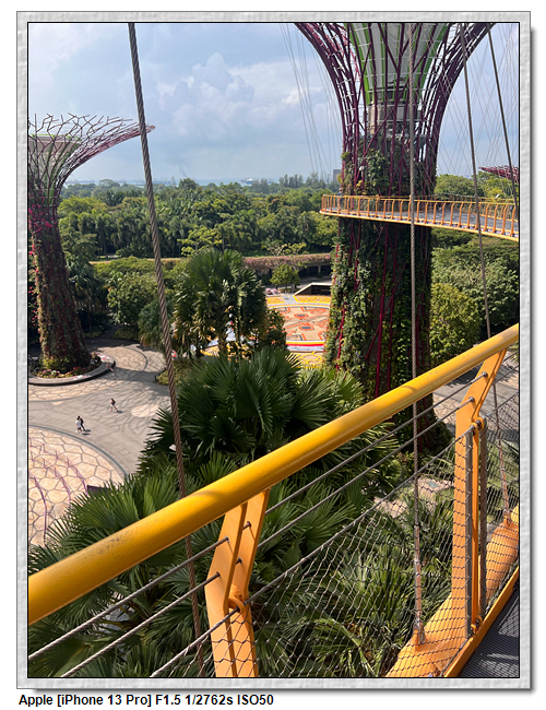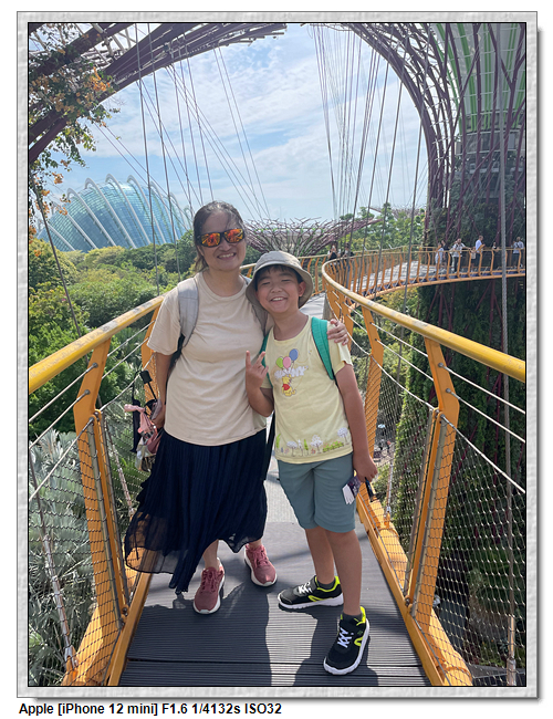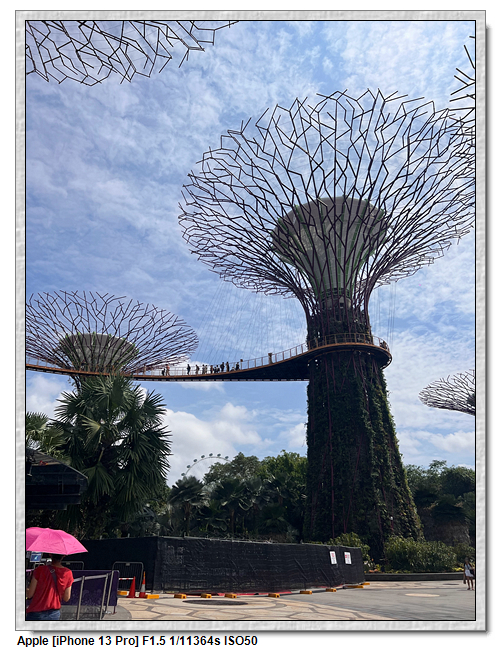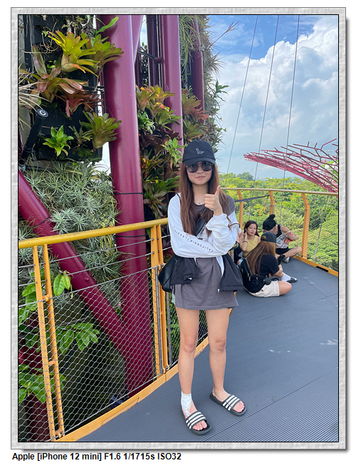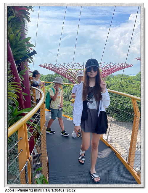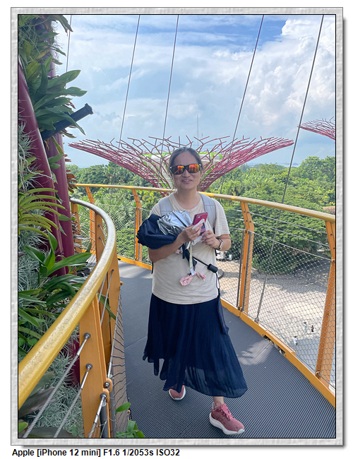 天空樹步道距離地面22公尺、長128公尺,連接5棵天空樹,在步道可眺望整個花園場景,不過上方無遮蔽物,很曬,且不能撐傘。雖然有風吹,但還是熱風~