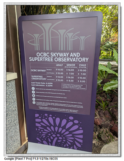 目前濱海灣花園有三個場館,奇幻花園(Floral Fantasy)、花穹(Flower Dome)、雲霧林(Cloud Forest),以及天空樹景觀台(Supertree Observatory),天空樹步道(OCBC Skyway)。時間的關係,我們只打算參觀天空樹景觀台(Supertree Observatory)+天空樹步道(OCBC Skyway)。