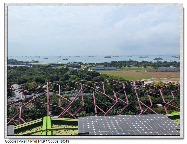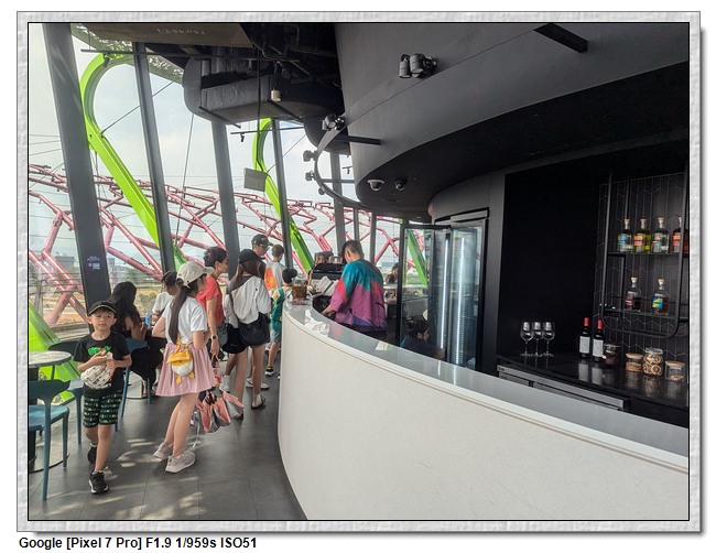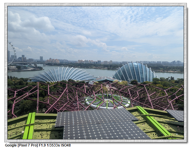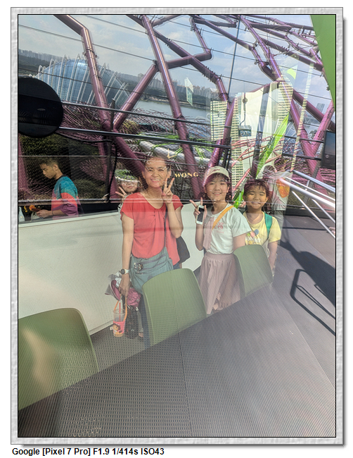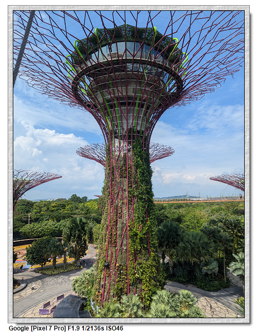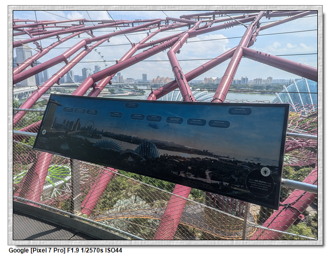 天空樹觀景台分成兩部分,一開始是帶領到最上方的平台,這應該是整個花園的最高處,可眺望整個濱海灣,不過也是無遮蔽物,太曬了,很快的我們就往下方的咖啡廳移動。