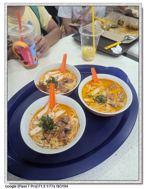 叻沙還不錯吃,整個南洋風味的味道,麵條跟台灣的不一樣,有點像粿條的細圓條狀但又不是,整個搭配起來很好吃。