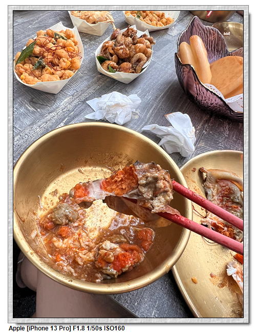 螃蟹是算重量的,1公斤$108元,我們這隻是1.4公斤。秤重也沒在我們面前秤,只是結帳時說螃蟹重量,只能說信任啦~這餐應該是我們吃最貴的一餐。
