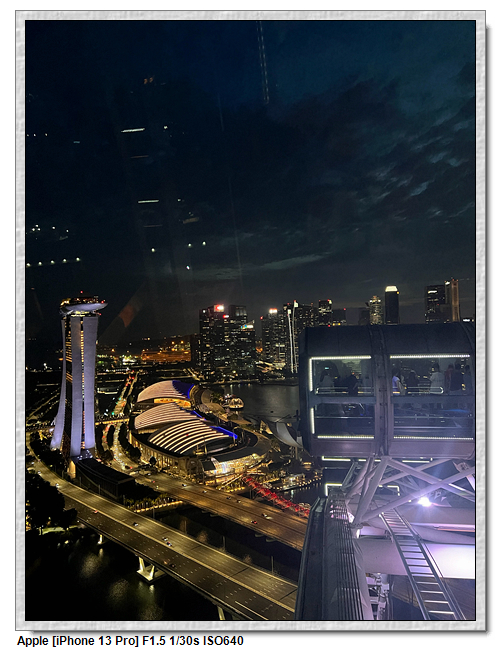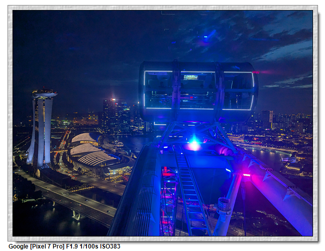 新加坡摩天觀景輪,42層樓高,輪體直徑達150米,安置在3層的休閒購物中心樓上,總高度達到165米。28個安裝了空調的座艙可以分別容納28名乘客。摩天輪旋轉一周約用30分鐘時間。