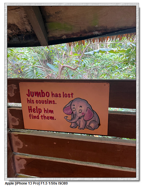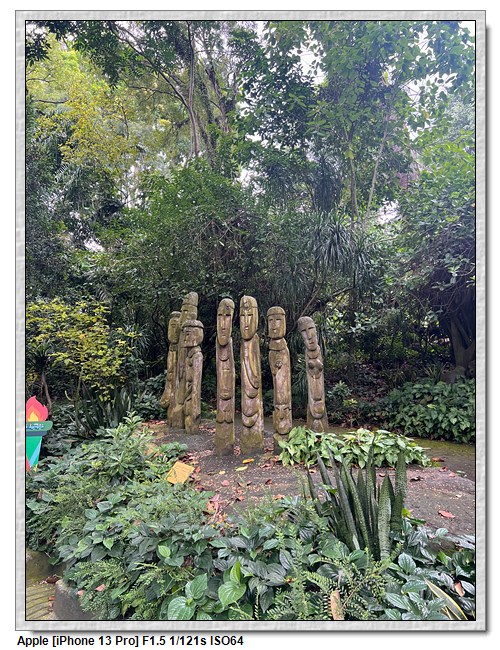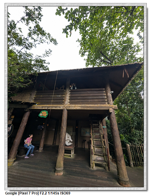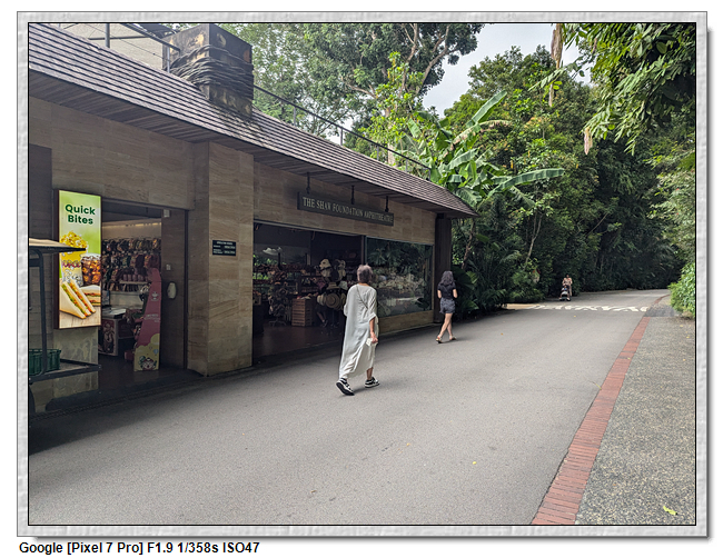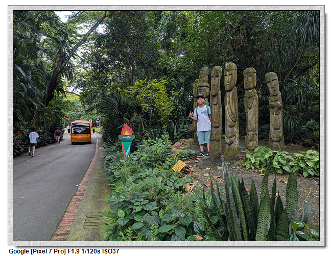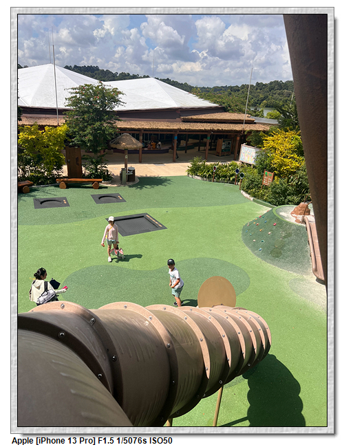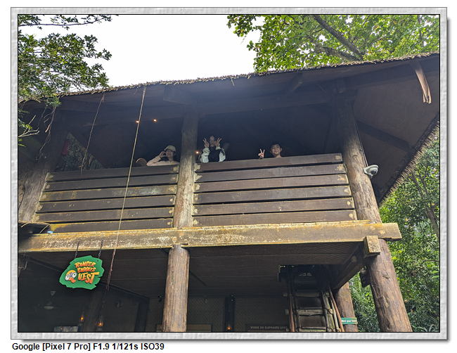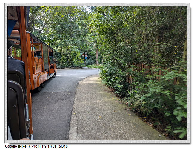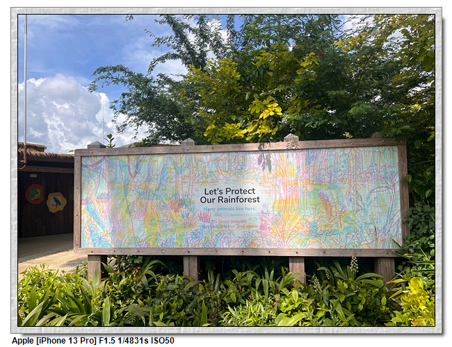 從遊園車站4號徒步走到餐廳這一小段路,感覺像是走在森林裡,這裡樹木超密盛,很有叢林感。有些展館藏身在樹林裡,不然容易發現,但還是有指示牌。