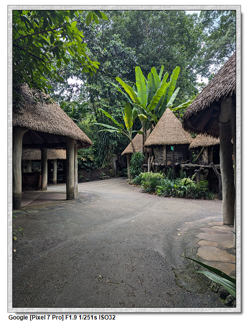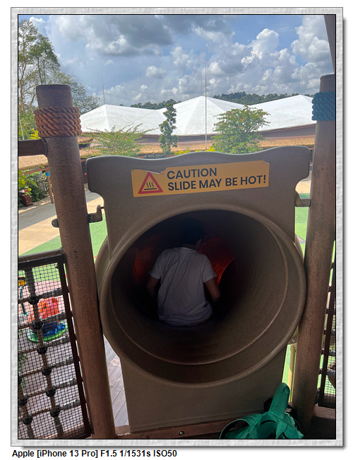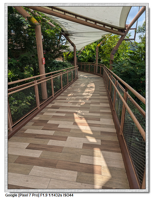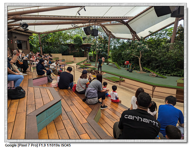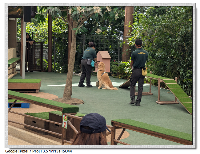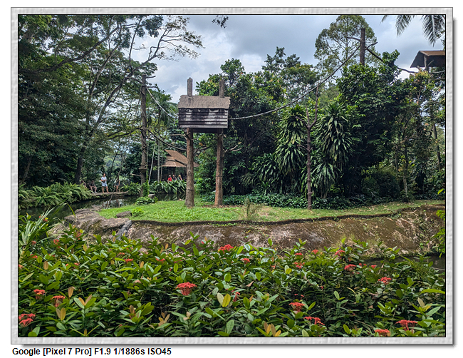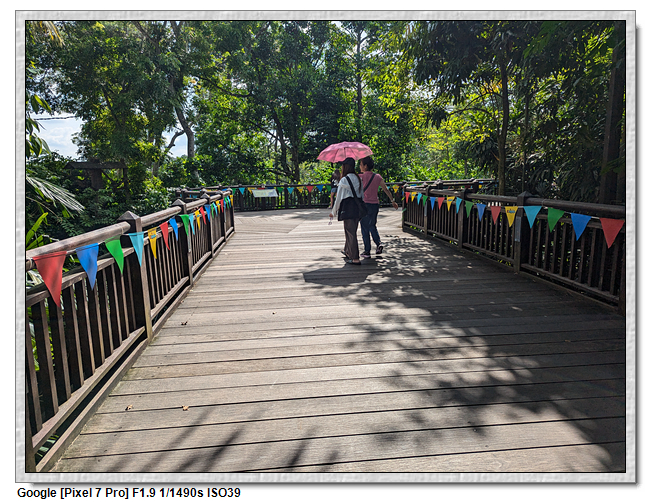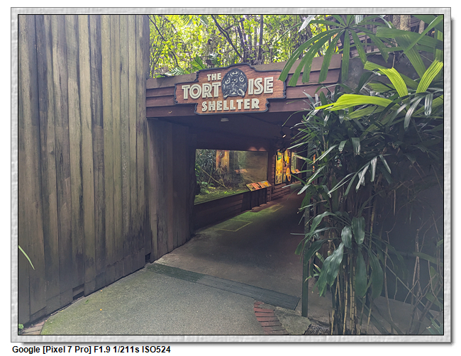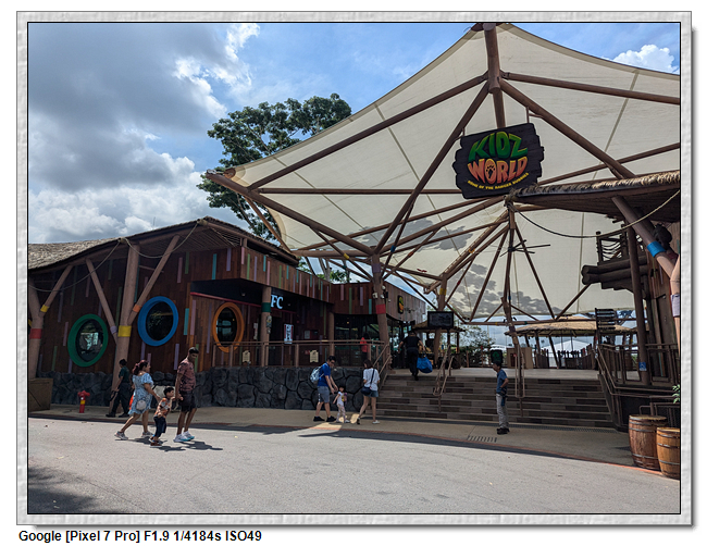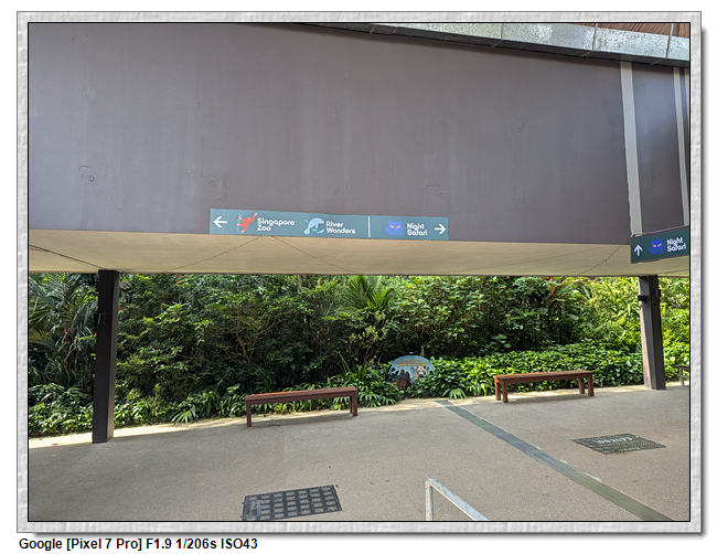 從遊園車站4號徒步走到餐廳這一小段路,感覺像是走在森林裡,這裡樹木超密盛,很有叢林感。有些展館藏身在樹林裡,不然容易發現,但還是有指示牌。