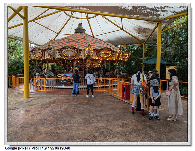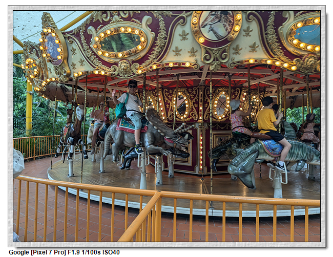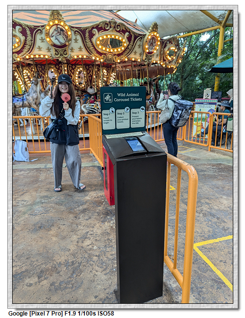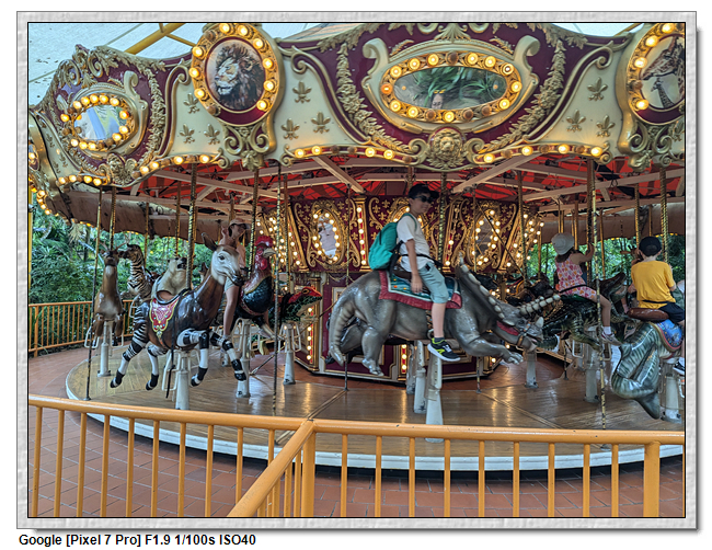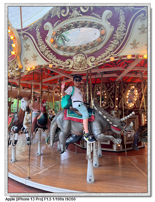 看完表演,從遊覽車站4號,我們開始徒步往餐廳的方向前進,途中會經過一個旋轉木馬,我們有兩張小朋友的旋轉木馬券,官網購票贈送的,只有12歲以下才有。