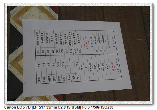 【餐點價目】