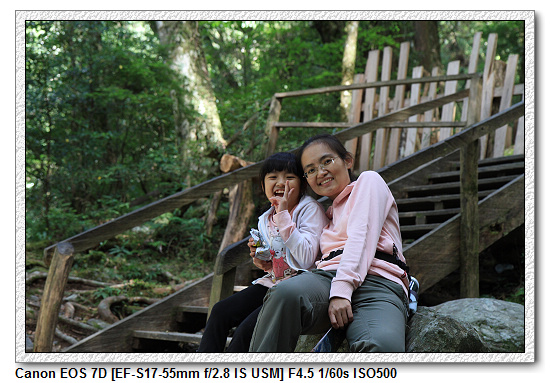 往巨木群路上有個瞭望台,小羽看到一直說要爬上去,第一次小羽媽帶小羽爬上去後,又哇哇叫說好高好高。後來換小羽爸帶小羽上去,又覺得很好玩,那到底是怕高還是好玩?