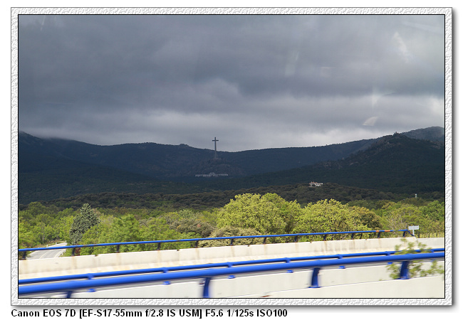 在行經西班牙的高速公路時,領隊阿芳介紹一個遠方不會去的景點。遠遠看去只看到一個大十字架,我也不知該怎麼稱呼,姑且叫西班牙的忠烈祠(Valle de los Caidos,阿芳說功用就像台灣的忠烈祠一樣),這個西班牙忠烈祠主要是安葬當時死於西班牙內戰的將士,不分城市皆葬於此。不過有個特別的人,有是唯一一位不是死於西班牙內戰的將領也是葬於此。就是西班牙的總理佛朗哥(或稱總統、領導、獨裁者、狂人,都是可以的啦~),生前指定死後要葬於此。因此他就成為唯一一個特例。