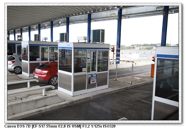 西班牙的收費站很有趣,不像台灣一樣繳了錢就可直接過去,閘道口還有桿子,車子都會先等在那,旁邊也個指示燈,等燈由紅轉綠時,桿子升起才可過。至於在等什麼,我就不知了。明明前方就沒車子,就看到一排車等在那。