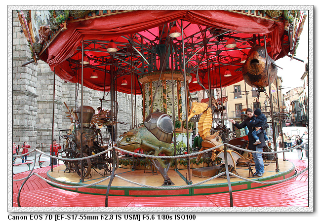 到水道橋處,最令小羽爸感興趣的,並不是水道橋主體(雖然它也很美),而是在廣場處的旋轉木馬。