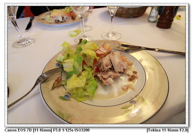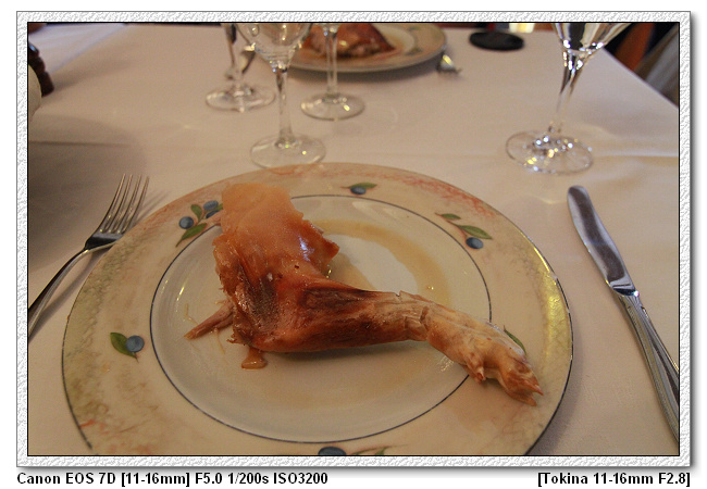 塞哥維亞的烤乳豬果然是最負盛名的料理,好吃耶~~~真的就像傳言中的嫩、酥、脆,皮脆肉嫩,雖然稍鹹(歐洲好像都是這樣,偏鹹,連我都覺得鹹,可見就是鹹),不過還是好吃~~~