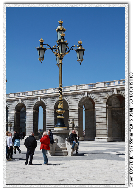 加冕廳-這裡像是凡爾賽宮的鏡廳,有很多鏡子,有增加視覺空間的效果。而鏡子四周則是用銀線所製作的雕飾(看起來黑黑的,銀氧化了~)。這裡也有漂亮的水晶燈,不過是made in 威尼斯。加冕廳廳起來就是國王加冕的地方,沒錯,現任西班牙國王胡安卡洛斯ㄧ世1975年在這加冕登基。而加冕椅只伺候一代,下一任國王就會換椅子。現在大多用來國王接見重要外賓的地方。不過整個王宮已經被當作觀光資源,因此國王也很少在這裡接見外賓,除非有相當重要的目的,不過大多只是給媒體拍拍照,之後就會移往他處。不然封宮太久,遊客會罵。