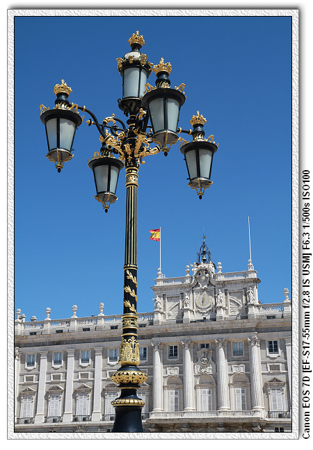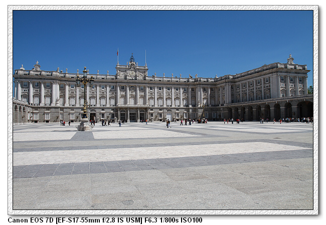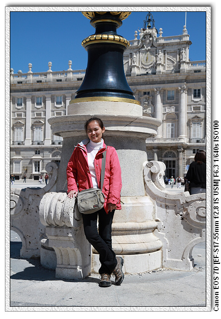馬德里王宮有小凡爾賽宮之稱,裡面一共有2000多的房間,目前只展示20個房間參觀。馬德里王宮原建於18世紀,1560年西班牙選馬德里為首都,原本王宮為木造,而後不小心被伙夫給燒了。因此在1738年原址重建。胡安卡洛斯ㄧ世即位之後,將這座大型建築與人民共享,皇室家族則低調住在馬德里附近的郊區,只有舉行重要公開儀式才會出現在這。