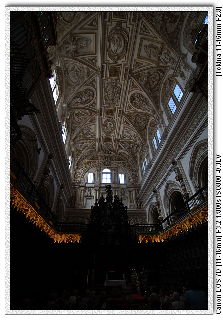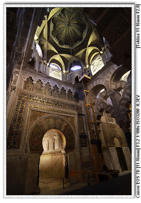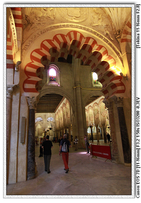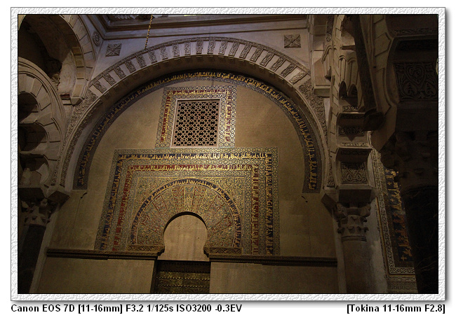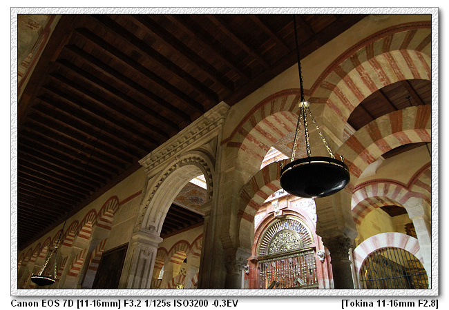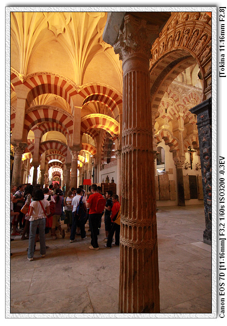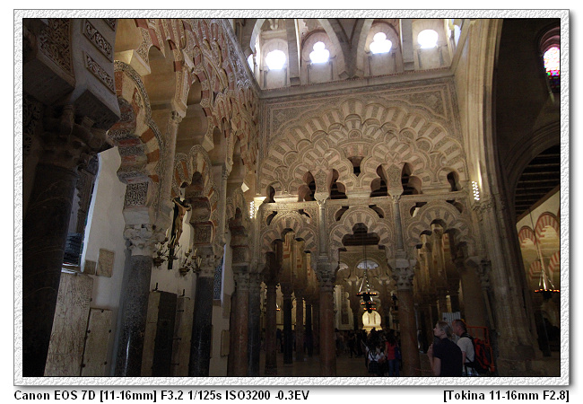 當時查理五世四處旅遊(文藝復興時期,15、16世紀),來到哥多華,參觀清真寺之後留下一句話,這裡怎麼沒有天主教的祭台,底下的人會了拍馬屁,於是便將清真寺裡面蓋了一個文藝復興時期天主教的祭台。