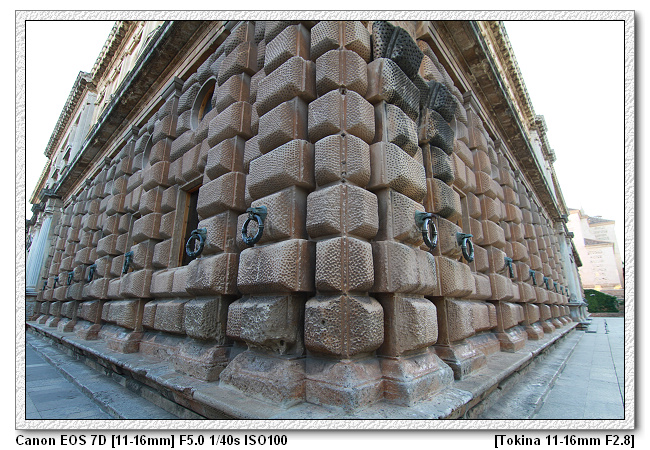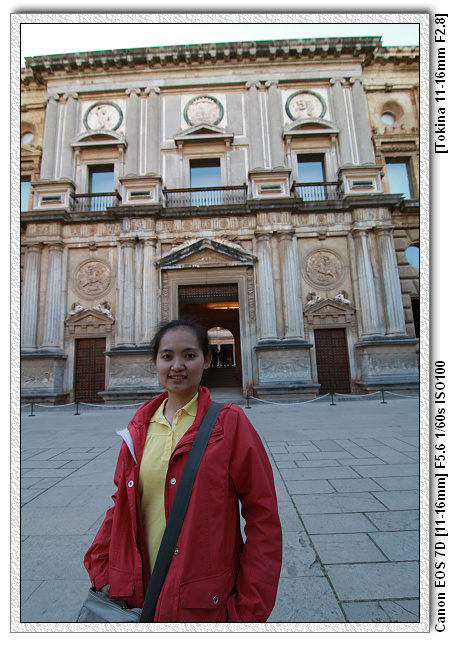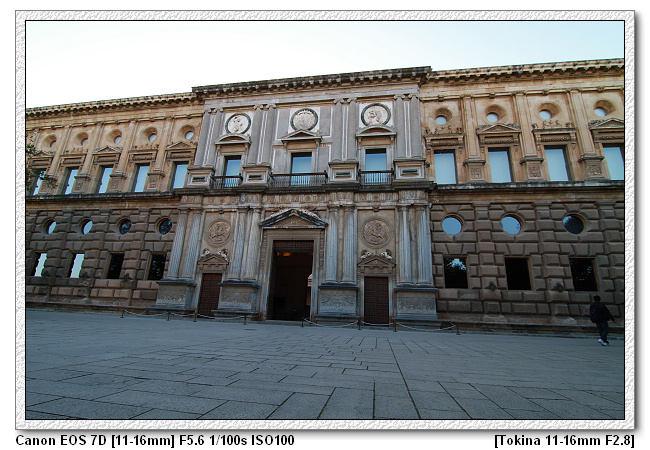 進入阿罕布拉宮,第一個建到的建築物,是卡洛斯五世宮(Palacio de Carlos V)。這是一座充滿文藝複興式的建築物,與阿爾罕布拉宮整體的伊斯蘭建築風格形成鮮明對比。宮殿建於1526年,也就是格拉納達回到基督教手中之後,是為卡洛斯一世(查理五世)的婚禮而建。很奇怪吧,明明是為卡洛斯一世而蓋,卻命名為卡洛斯五世宮。其實卡洛斯一世、查裡五世、卡洛斯五世其實都是指同一人,在西班牙的歷史上,應該稱為卡洛斯一世,但就神聖羅馬帝國而言,他是查理五世國王,但查理五世覺得自己很偉大,統制範圍超過西班牙,所以自稱為卡洛斯五世。