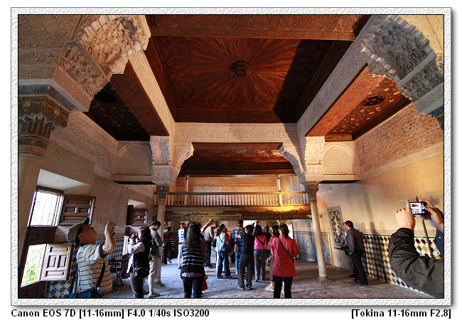 右邊的跳舞廳,在13-15世紀時,其舞蹈是肚皮舞,但這間跳舞廳的名稱不是叫作跳舞室,也不是叫肚皮舞室,一般我們稱作"阿本塞拉赫斯廳"(Sala de Abencerrajes)。Abencerrajes不是國王的名子,而是當時一個貴族的家族名。這又是一個八卦。