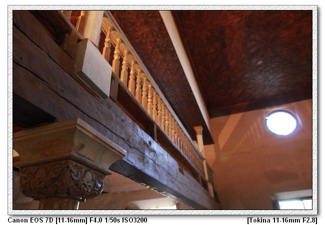 原本天花板是完整的,但現在去只有一半。這是因為後來拿破崙攻占西班牙時,曾拿這裡當作軍火庫。後來西班牙軍隊反攻時,哪裡管這裡是千年古蹟,只知道敵人在裡面,於是砲轟,大砲把另一半屋頂打壞了。