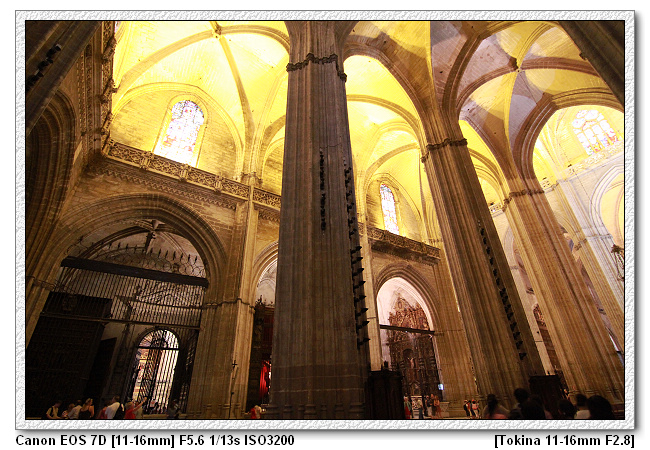 塞維亞的大教堂在摩爾人統治時期原本是一座清真寺,後來西班牙人把摩爾人趕走之後,就把原來的清真寺(西元11-13世紀所建)拆除,西元1500年改建成一座徹底展現雄偉氣勢的大教堂,只留下希拉達塔(La Giralda)。為何只留下希拉達塔,原是回教徒的叫拜樓,是這一區最高的塔,因天主教也需要一個鐘樓,所以留下希拉達塔並改成鐘樓。