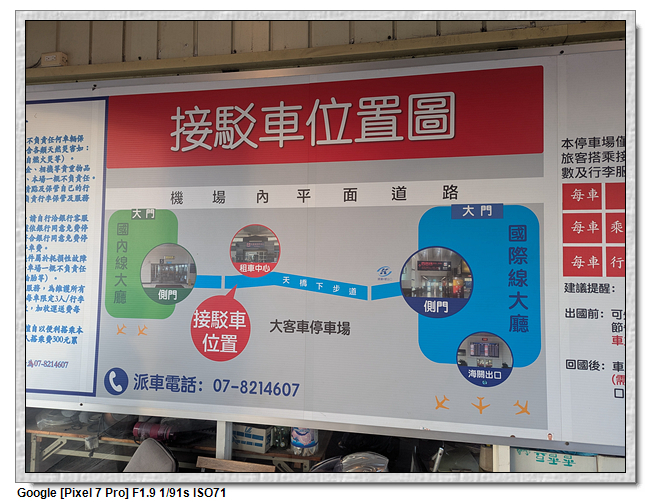 今天是出發日,06:40集合。開老爸的車去小港機場附近的大程停車場,使用信用卡的免費停車,不用預約,直接開進去。大程停車場是平面停車場,開進去後自己找停車位停車,車鑰匙自己帶走,跟桃園的停車塔要預約、要留車鑰匙不太一樣。