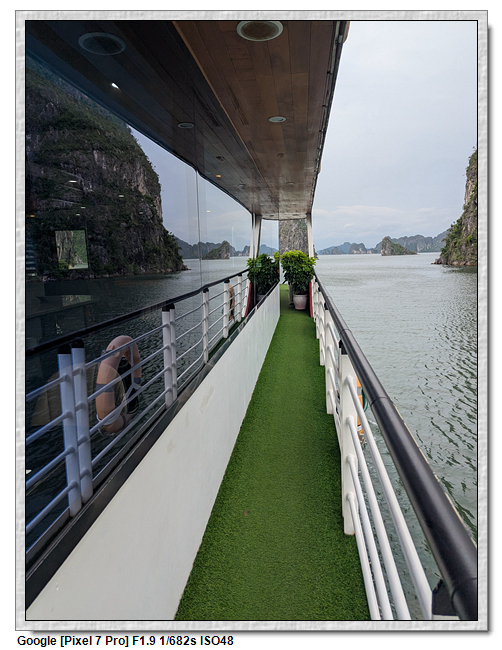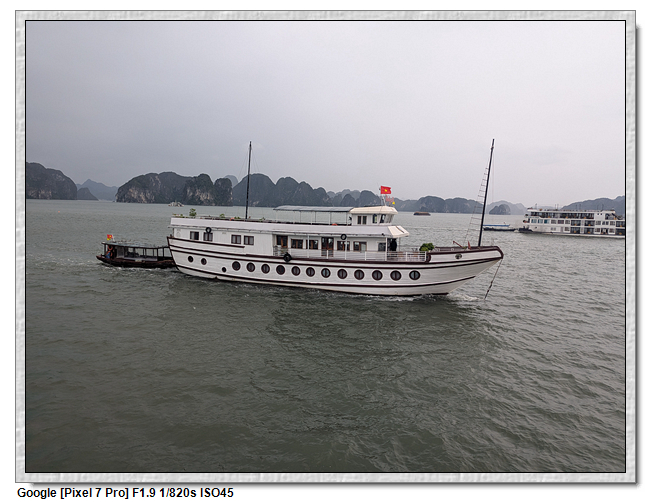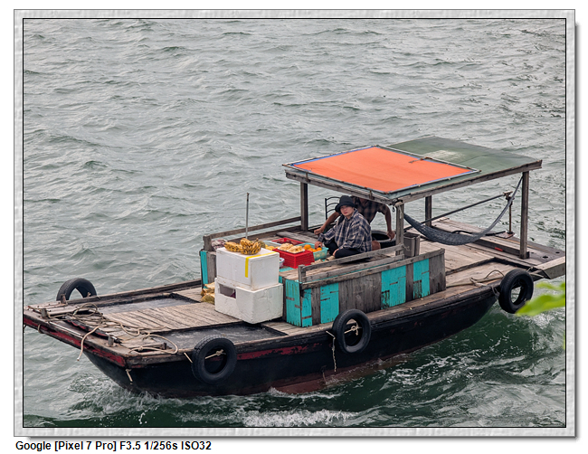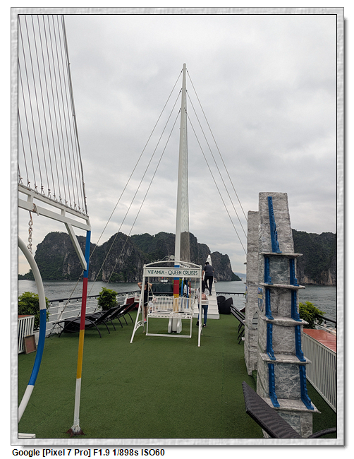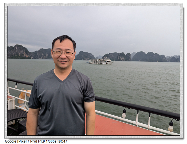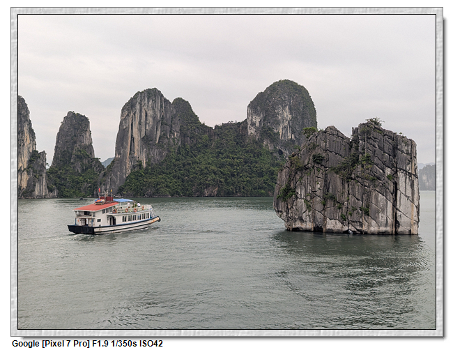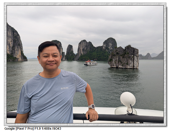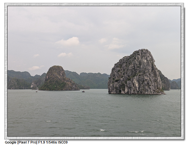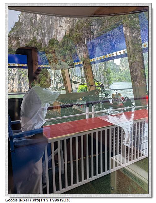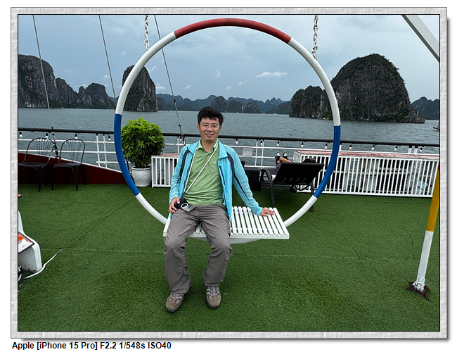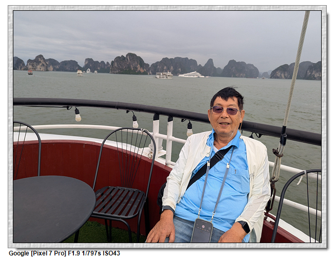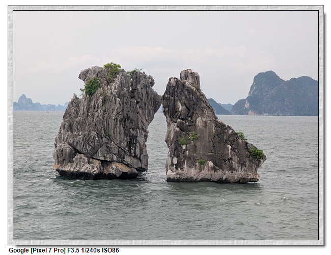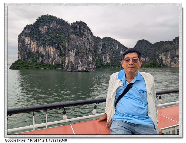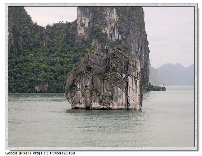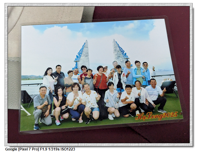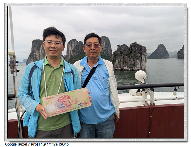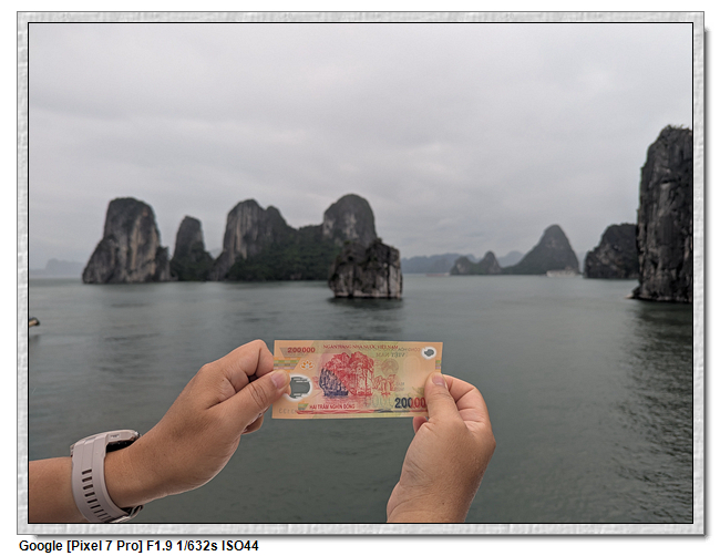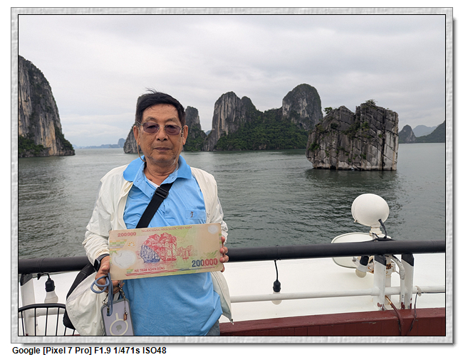 航行到中途,導遊突然拿出一張20萬紙鈔,並指著前方的一塊單獨矗立仔海上的石頭,說這是紙鈔上的圖案。當然大家身上並沒有20萬紙鈔,只好搶拿導遊的紙鈔拍照。後來不知從哪裡生出一片20萬的大型紙板。