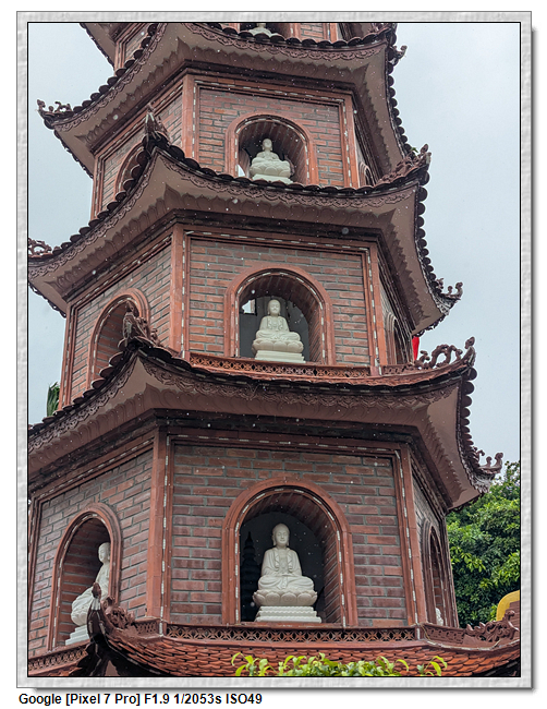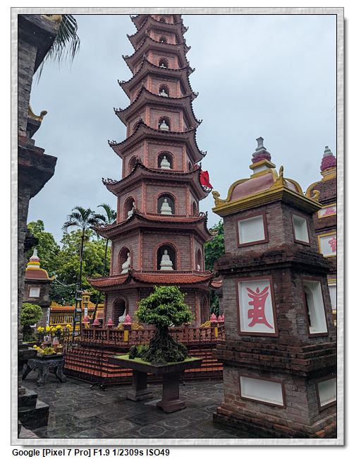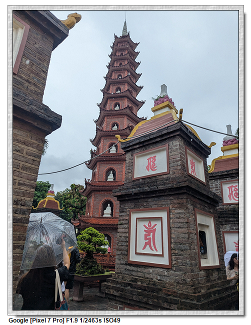 鎮國寺,坐落於西湖 (Hồ Tây) 的一座小島上,是全越南最古老的寺,建於541年之間,有1500年歷史。寺內佛、道皆奉,以佛教為主,供有:臥佛、千⼿觀⾳、彌勒佛、指天地佛。