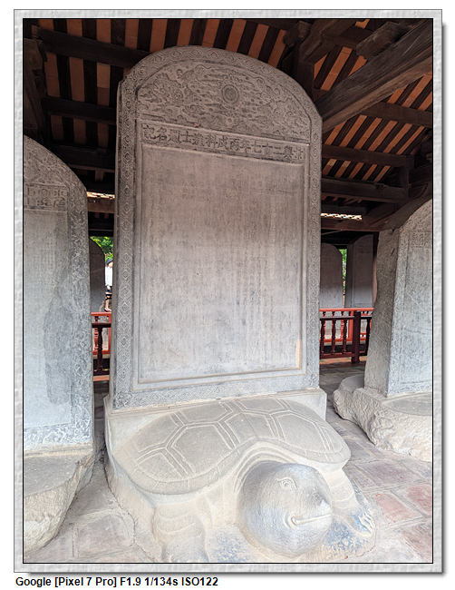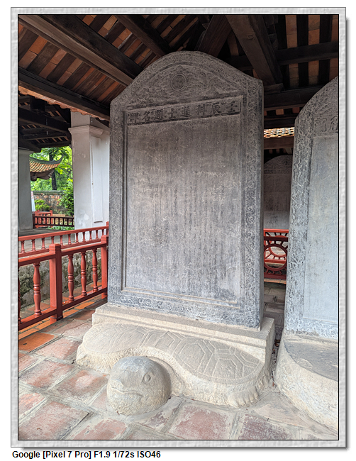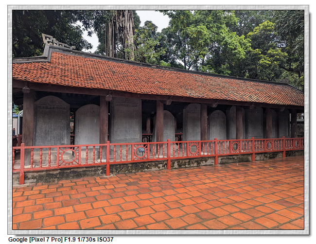 過奎文閣就是第三庭院。院內有一大方型天光井(方型蓮池)。兩側各一座進士坊,因為越南歷來沒有狀元,所以只為進士刻立石碑,坊內立有82塊進士石碑,每坊各41塊,形成碑林,記載了從大寶三年(1442年)至景興四十年(1779年)337年間的82屆科舉考中的1306名進士的姓名與籍貫。