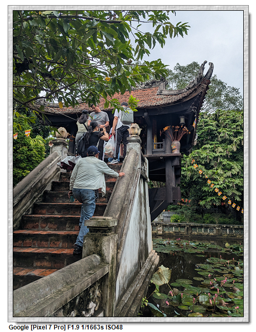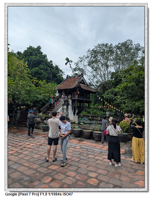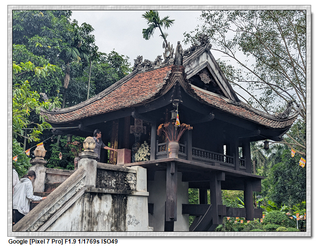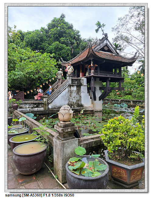 一柱廟是河內地標,此祠廟建於⼀根柱⼦之上造型獨特外型雖⼩,但卻是越南的代表古剎,⽽寺廟立在蓮花池中的優雅姿態,是李朝皇帝於1049年所建。廟⾝為⽊造,矗立於⽔中⼀根直徑有1.25公尺的⽯柱上,狀如蓮花。是奉祀觀世⾳菩薩的廟宇, 據說是李朝皇帝因膝下無⼦,於是求神賜⼦,某夜夢⾒觀世⾳菩薩坐在蓮花座上,⼿抱⼀⼦賜予他,不久果得⼀⼦。皇帝便建此廟供奉觀世⾳菩薩,以感謝神恩。如今是許多越南婦女前來上香祈求⼦嗣的廟宇,香火鼎盛。