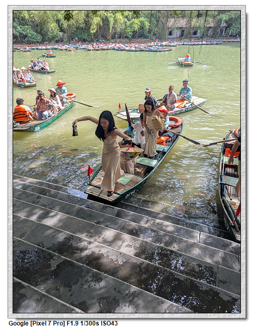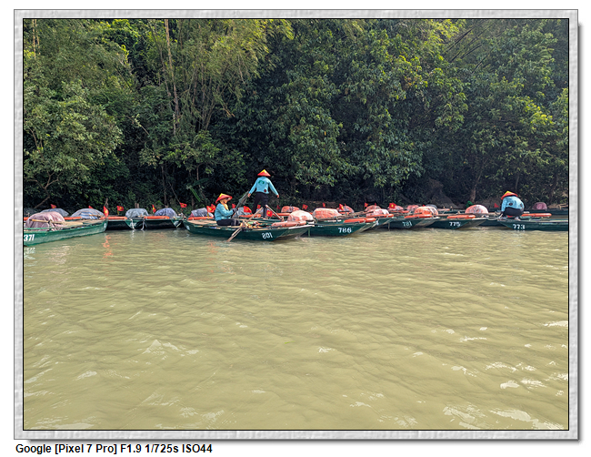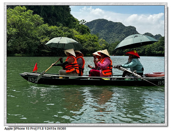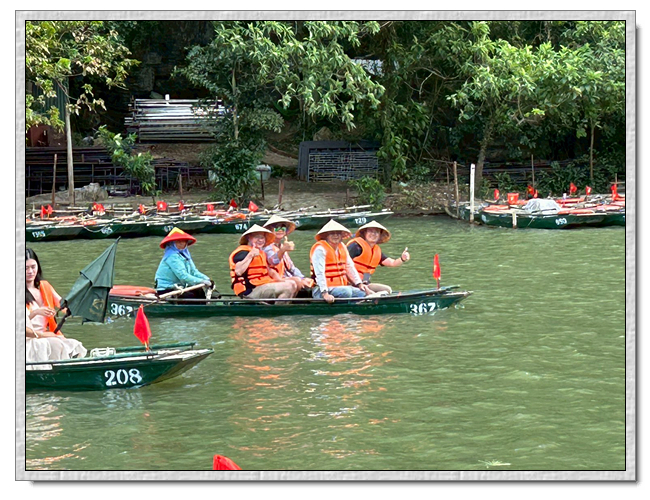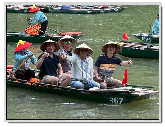回程時,團友們紛紛好奇船伕的薪水,小武說,船票一人是25萬越南盾,船伕是有底薪的,一個月是200萬越南盾,跑一趟船津貼是15萬越南盾,加上小費約8萬越南盾,所以一趟船至少可拿23萬越南盾。